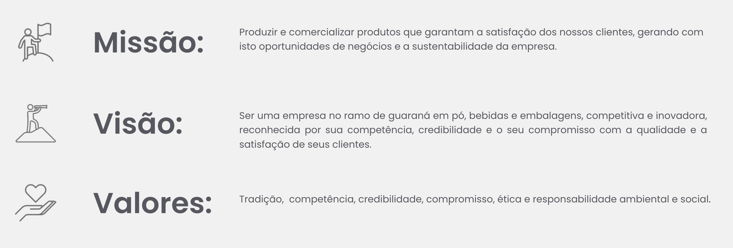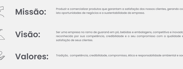 Ser uma empresa no ramo de guaraná em pó, bebidas e embalagens, competitiva e inovadora, reconhecida por sua competência, credibilidade e o seu compromisso com a qualidade e a satisfação de seus clientes.
